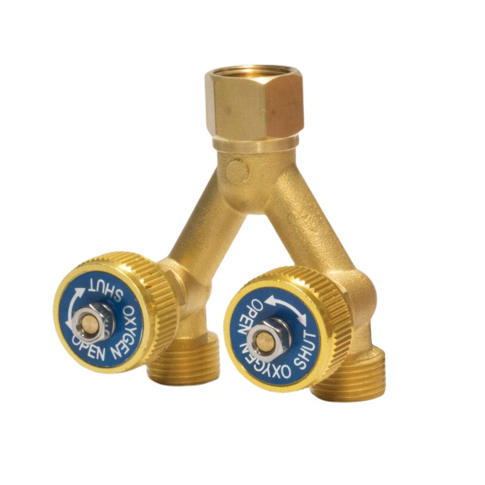 Distribuitor Splitter Gaz cu robineti pentru Oxigen. Filete IN/OUT G3/8″ RH.